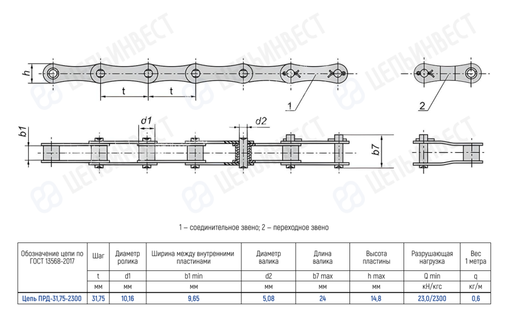 • Обозначение цепи по ГОСТ Цепь ПРД-31,75-2300