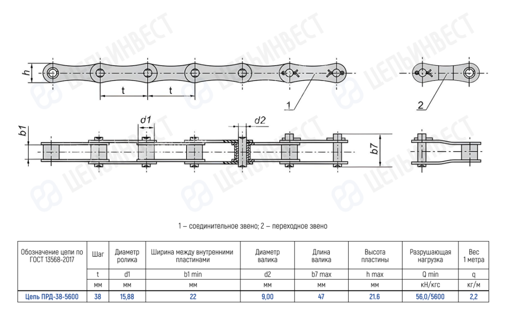 • Обозначение цепи по ГОСТ Цепь ПРД-38-5600