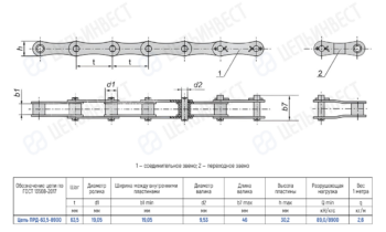 • Обозначение цепи по ГОСТ Цепь ПРД-63,5-8900