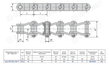 • Обозначение цепи по ГОСТ Цепь ПРИ-103,2-650 ТУ