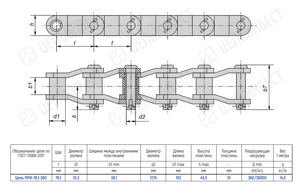 • Обозначение цепи по ГОСТ Цепь ПРИ-78,1-360
