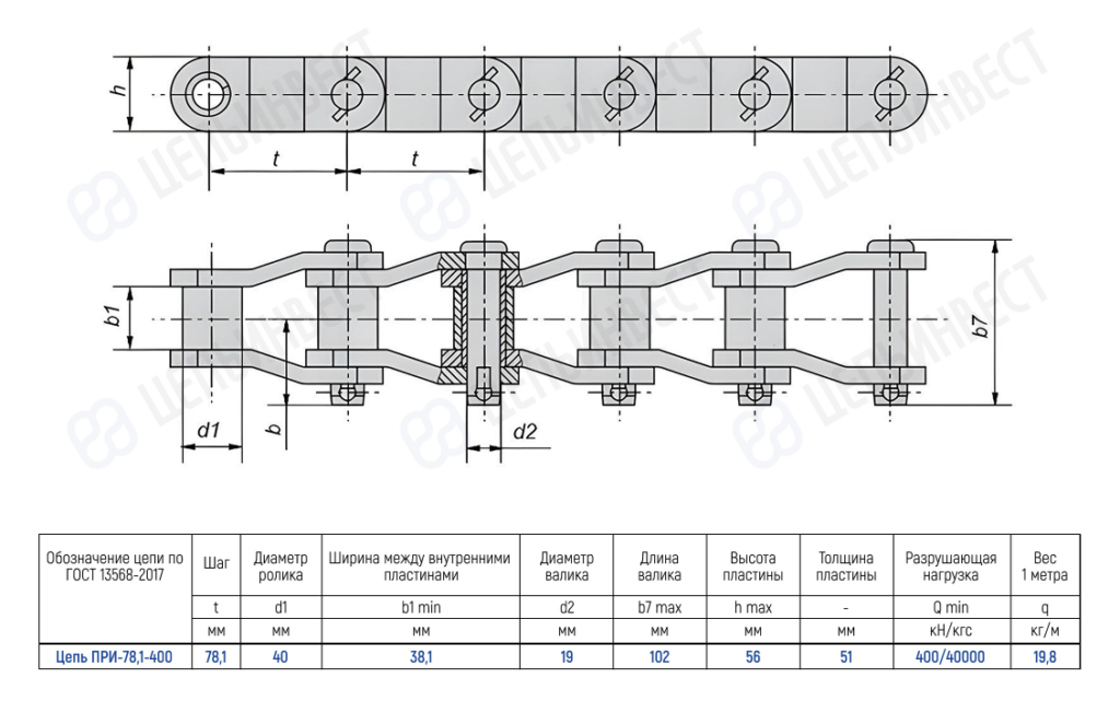 • Обозначение цепи по ГОСТ Цепь ПРИ-78,1-400