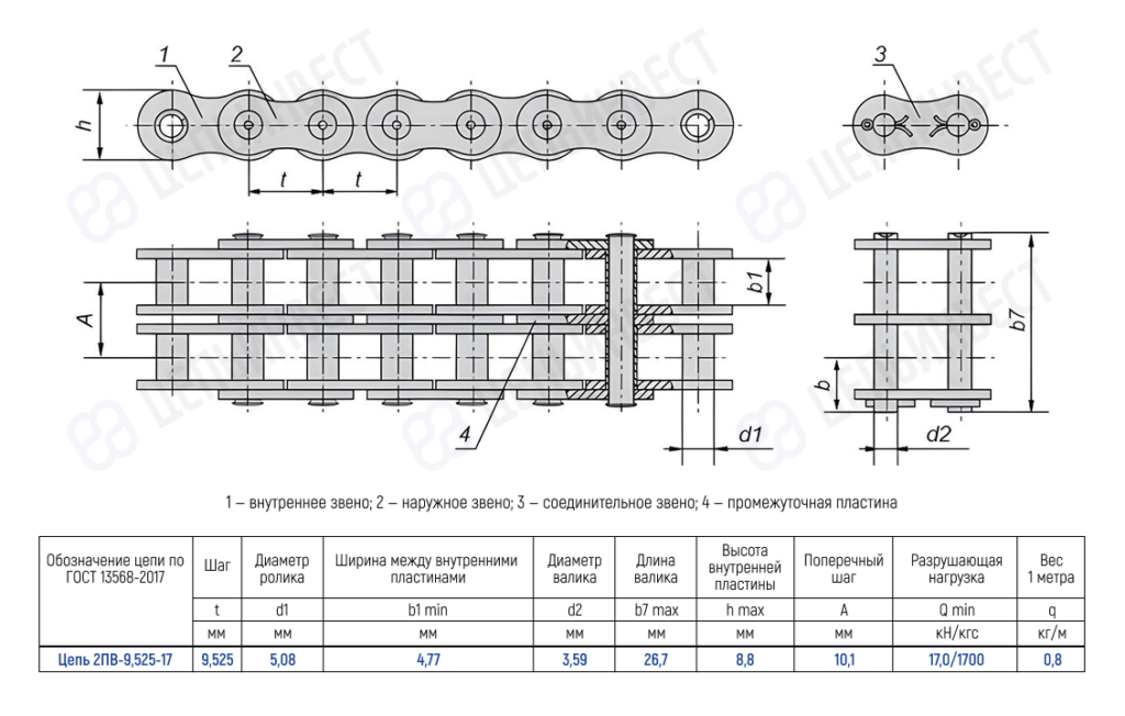 1 — внутреннее звено; 2 — наружное звено; 3 — соединительное звено; 4 — промежуточная пластина