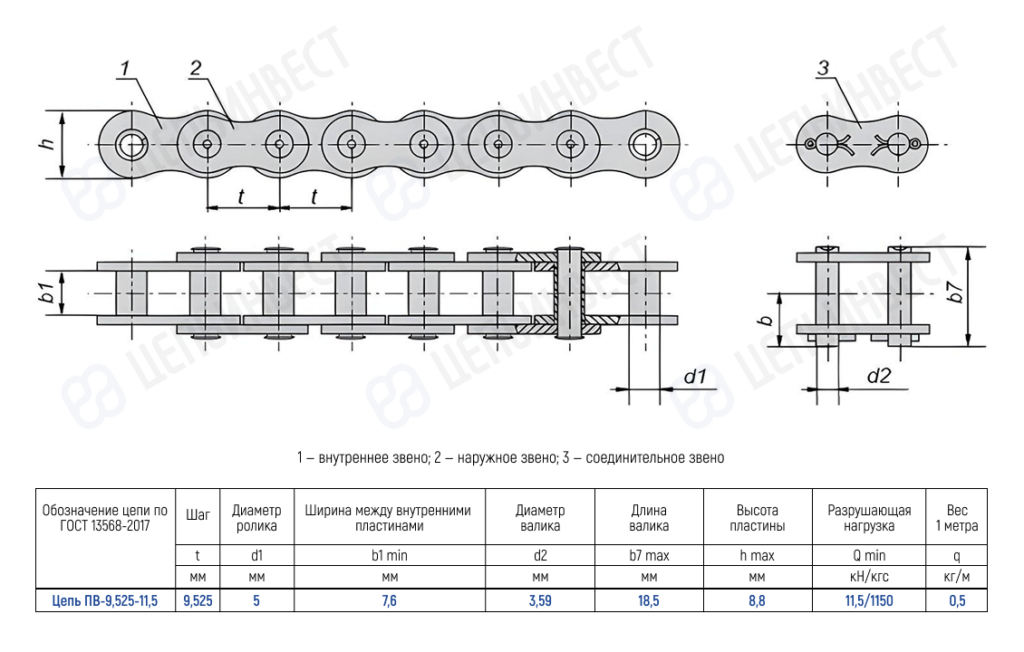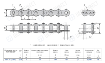 • Обозначение цепи по ГОСТ Цепь ПВ-9,525-11,5