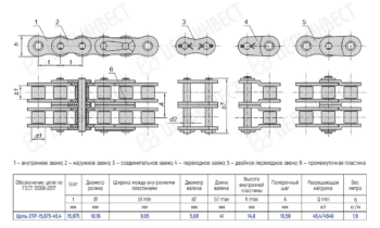 • Обозначение цепи по ГОСТ Цепь 2ПР-15,875-45,4